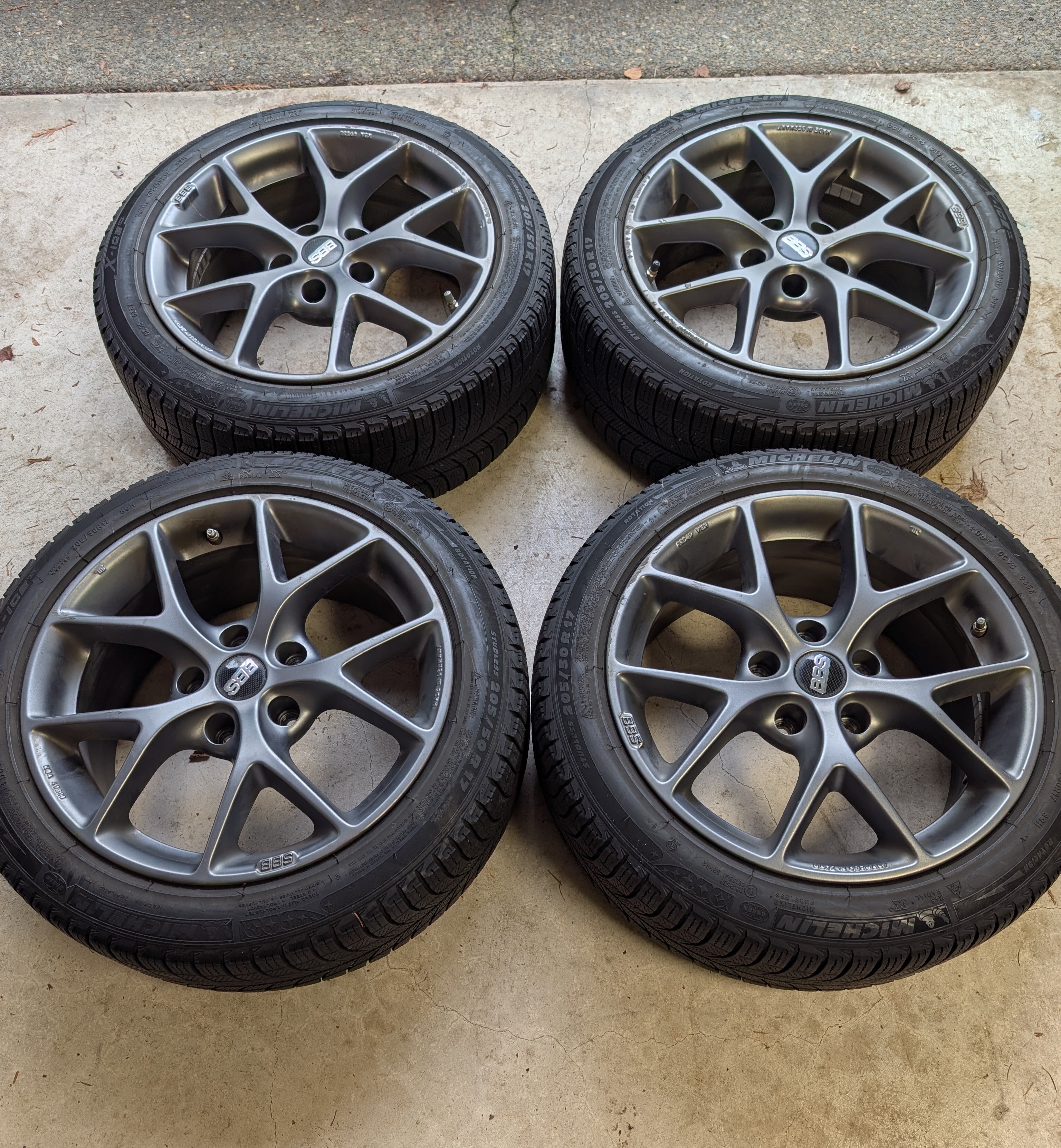 4x 17×7.5 Anthracite BBS SR with X-Ice Xi3 (purchased Dec 2017 and used winter seasons on BMW 228i XDrive)